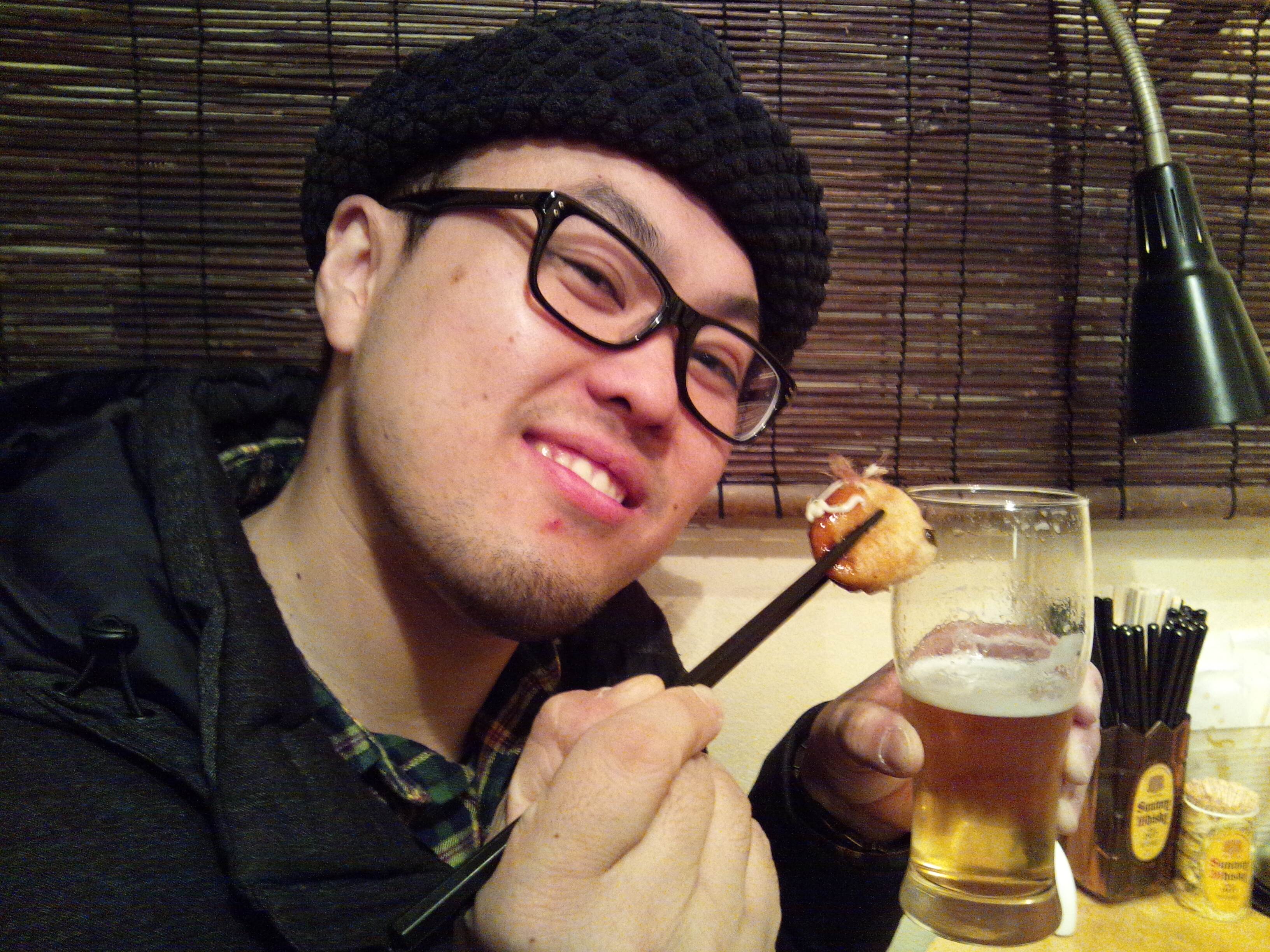 ルービー越しの藤井いい顔してます笑 たこ焼き12個+店長さんのサービス
