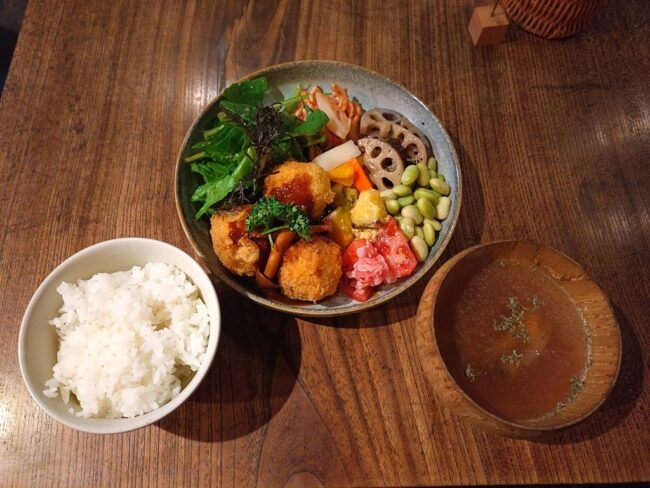 古民家風の店内でスパイスの効いたカレーや定食を楽しめるお店です。